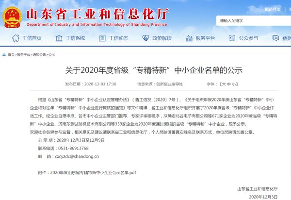 根據(jù)《山東省“專精特新”中小企業(yè)認(rèn)定管理辦法》(魯工信發(fā)〔2020〕7號)、《關(guān)于組織申報(bào)2020年度山東省“專精特新”中小企業(yè)和對往年“專精特新”中小企業(yè)進(jìn)行復(fù)核的通知》等文件精神,省工業(yè)和信息化廳組織開展了2020年度省級“專精特新”中小企業(yè)評選工作。經(jīng)主管部門推薦、專家評審等程序,確定我公司為2020年度省級“專精特新”中小企業(yè)。