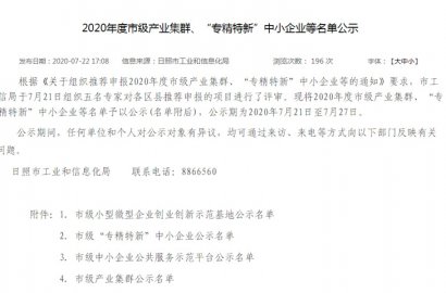 根據(jù)《關(guān)于組織推薦申報2020年度市級產(chǎn)業(yè)集群、“專精特新”中小企業(yè)等的通知》要求,市工信局組織專家對各區(qū)縣推薦申報的項目進(jìn)行了評審。我公司通過2020年度市級“專精特新”中小企業(yè)評審。
